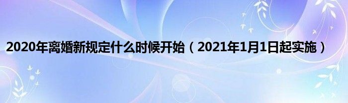 大家好,综合小编来为大家讲解下。2020年离婚新规定什么时候开始,2021年1月1日起实施这个很多人还不知道,现在让我们一起来看看吧!