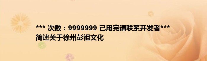 本文*** 次数:9999999 已用完请联系开发者*** 简述关于徐州彭祖文化到此分享完毕,希望对大家有所帮助。