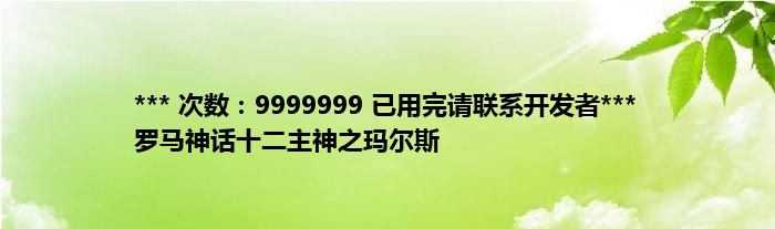 本文*** 次数:9999999 已用完请联系开发者*** 罗马神话十二主神之玛尔斯到此分享完毕,希望对大家有所帮助。