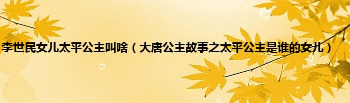 本文李世民女儿太平公主叫啥,大唐公主故事之太平公主是谁的女儿到此分享完毕,希望对大家有所帮助。