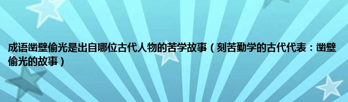 本文成语凿壁偷光是出自哪位古代人物的苦学故事,刻苦勤学的古代代表:凿壁偷光的故事到此分享完毕,希望对大家有所帮助。