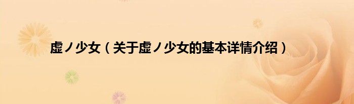大家好我是小蝌蚪,虚ノ少女,关于虚ノ少女的基本详情介绍很多人还不知道,那么现在让我们一起来看看吧!
