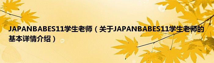JAPANBABES11学生老师(关于JAPANBABES11学生老师的基本详情介绍)
