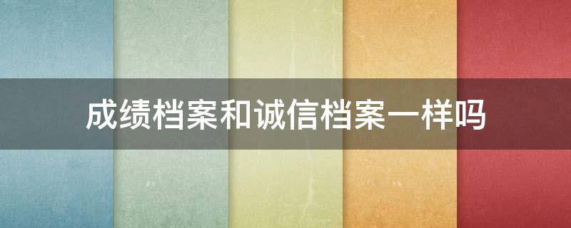 成绩档案和诚信档案不一样,一个是记录成绩的,一个是记录诚信的。诚信档案是在全国范围内的各个领域建立的各种诚信体系,旨在促进社会发展、打造诚信、构建和谐社会。按诚信档案的对象分类:一般分为个人诚信档案和企业诚信档案、团体组织诚信档案、政府诚信档案等。由于诚信档案是个综合性的概念,所以根据不同分类,也就产生了各种不同的诚信档案。成绩档案一般指学生档案,是指本校在学生管理活动中形成的,记录和反映学生个人经历、德才能绩、学习和工作表现的,以学生个人为单位集中保存起来以备查考的文字、表格及其他各种形式的历史记录。