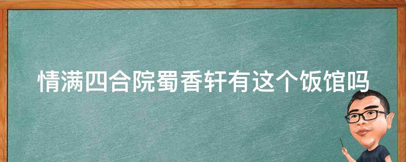 情满四合院里没有蜀香轩这个饭馆,里面的饭馆名叫蜀香楼。在剧中,娄晓娥为了把傻柱从秦淮茹身边抢回来,就开了一家叫蜀香楼的饭店,让傻柱当厨师长,由于傻柱的厨艺过硬,饭店经营的非常不错。《情满四合院》是由刘家成执导,由何冰、郝蕾等主演的都市情感剧。该剧讲述了发生在二十世纪六十年代到九十年代年间,北京四合院里的人文故事、生活变迁和社会百态的故事。该剧于2015年11月7日在济宁影视频道首播。