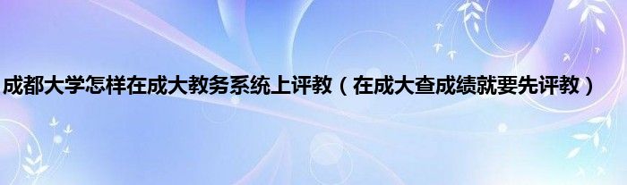 欢迎观看本篇文章,小升来为大家解答以上问题。成都大学怎样在成大教务系统上评教,在成大查成绩,就要先评教很多人还不知道,现在让我们一起来看看吧!