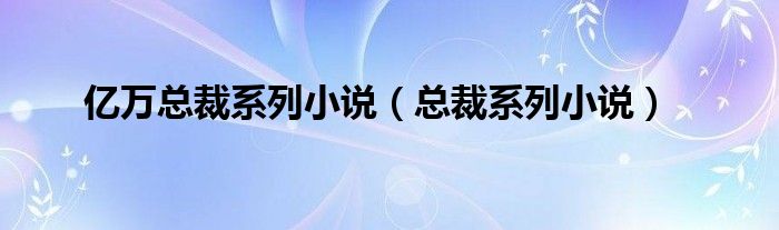 大家好,小问来为大家解答以上问题。亿万总裁系列小说,总裁系列小说这个很多人还不知道,现在让我们一起来看看吧!