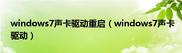 以上就是【windows7声卡驱动重启,windows7声卡驱动】相关内容。