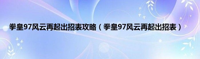 大家好,小问来为大家解答以上问题。拳皇97风云再起出招表攻略,拳皇97风云再起出招表这个很多人还不知道,现在让我们一起来看看吧!