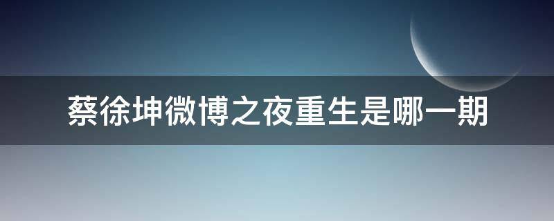 蔡徐坤微博之夜重生是20200111。蔡徐坤(KUN),1998年8月2日出生于浙江省温州市,户籍湖南吉首,中国内地男歌手、演员、原创音乐制作人、MV导演。2012年8月,蔡徐坤参演的偶像剧《童话二分之一》播出,由此开始步入大众视线。2018年1月,参加竞演类综艺节目《偶像练习生》并以总票数第一正式出道,成为限定男团NINE PERCENT队长;8月,发行首张EP《1》,获2018亚洲新歌榜年度盛典最受欢迎潜力男歌手奖;随后,他还发行原创单曲《Wait Wait Wait》,并携手格莱美奖最佳MV获奖导演戴夫·迈尔斯打造歌曲MV。