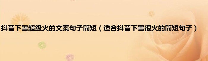 欢迎观看本篇文章,小升来为大家解答以上问题。抖音下雪超级火的文案句子简短,适合抖音下雪很火的简短句子很多人还不知道,现在让我们一起来看看吧!