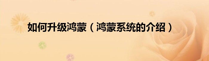 欢迎观看本篇文章,小升来为大家解答以上问题。如何升级鸿蒙,鸿蒙系统的介绍很多人还不知道,现在让我们一起来看看吧!