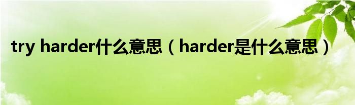 以上就是【try harder什么意思,harder是什么意思】相关内容。