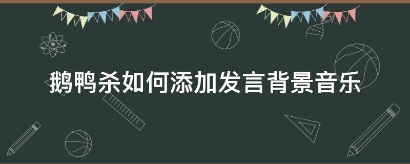 最佳答案进入游戏主界面,主界面左下角有一个音乐按钮,点击就会开启背景音乐,然后发言背景音乐也会一直在,游戏中一共有4种主题的背景音乐。《鹅鸭杀》中玩家们将分为两个阵营,平民为鹅,杀手为鸭子,在地图自由活动期间鸭子可以直接刀人,刀人有冷却CD,鹅被刀之后会留下尸体(鹅腿)。鹅发现尸体可以按...