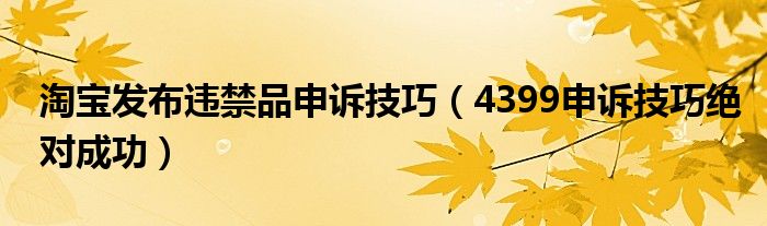 关于淘宝发布违禁品申诉技巧,4399申诉技巧绝对成功这个很多人还不知道,今天菲菲来为大家解答以上的问题,现在让我们一起来看看吧!