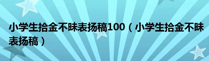 关于小学生拾金不昧表扬稿100,小学生拾金不昧表扬稿这个很多人还不知道,今天菲菲来为大家解答以上的问题,现在让我们一起来看看吧!