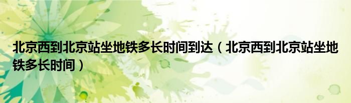 关于北京西到北京站坐地铁多长时间到达,北京西到北京站坐地铁多长时间这个很多人还不知道,今天菲菲来为大家解答以上的问题,现在让我们一起来看看吧!
