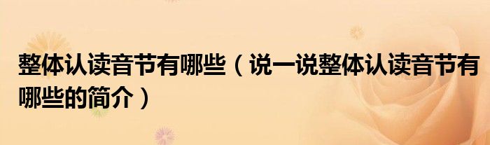 夏弥来为大家解答以下的问题,整体认读音节有哪些,说一说整体认读音节有哪些的简介,现在让我们一起来看看吧!