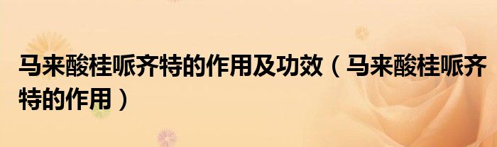 大家好,乐天来为大家解答以下的问题,马来酸桂哌齐特的作用及功效,马来酸桂哌齐特的作用很多人还不知道,现在让我们一起来看看吧!
