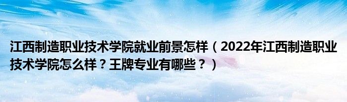 江西制造职业技术学院就业前景怎样(2022年江西制造职业技术学院怎么样?王牌专业有哪些?)
