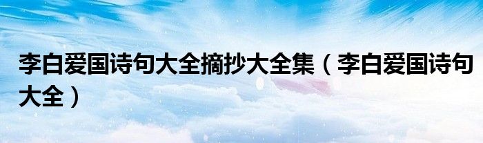 关于李白爱国诗句大全摘抄大全集,李白爱国诗句大全这个很多人还不知道,今天菲菲来为大家解答以上的问题,现在让我们一起来看看吧!