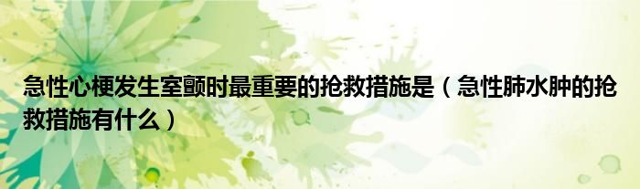 大家好,乐天来为大家解答以下的问题,急性心梗发生室颤时最重要的抢救措施是,急性肺水肿的抢救措施有什么很多人还不知道,现在让我们一起来看看吧!