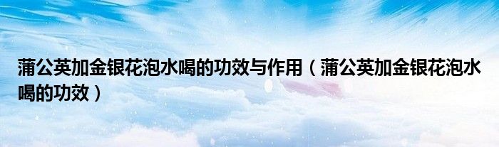 关于蒲公英加金银花泡水喝的功效与作用,蒲公英加金银花泡水喝的功效这个很多人还不知道,今天菲菲来为大家解答以上的问题,现在让我们一起来看看吧!