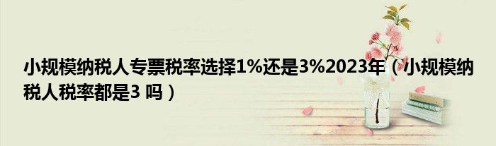 关于小规模纳税人专票税率选择1%还是3%2023年,小规模纳税人税率都是3 吗这个很多人还不知道,今天菲菲来为大家解答以上的问题,现在让我们一起来看看吧!