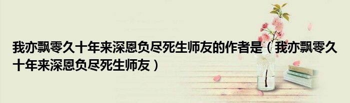 关于我亦飘零久十年来深恩负尽死生师友的作者是,我亦飘零久十年来深恩负尽死生师友这个很多人还不知道,今天菲菲来为大家解答以上的问题,现在让我们一起来看看吧!