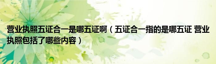 关于营业执照五证合一是哪五证啊,五证合一指的是哪五证 营业执照包括了哪些内容这个很多人还不知道,今天菲菲来为大家解答以上的问题,现在让我们一起来看看吧!