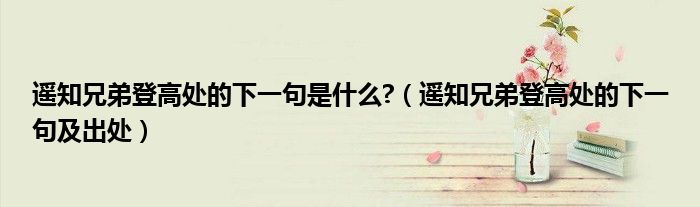大家好,乐儿来为大家解答以下问题,遥知兄弟登高处的下一句是什么?,遥知兄弟登高处的下一句及出处很多人还不知道,现在让我们一起来看看吧!