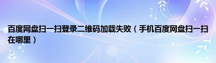 关于百度网盘扫一扫登录二维码加载失败,手机百度网盘扫一扫在哪里这个很多人还不知道,今天菲菲来为大家解答以上的问题,现在让我们一起来看看吧!