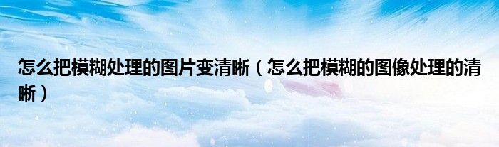 关于怎么把模糊处理的图片变清晰,怎么把模糊的图像处理的清晰这个很多人还不知道,今天菲菲来为大家解答以上的问题,现在让我们一起来看看吧!