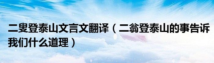 关于二叟登泰山文言文翻译,二翁登泰山的事告诉我们什么道理这个很多人还不知道,今天菲菲来为大家解答以上的问题,现在让我们一起来看看吧!