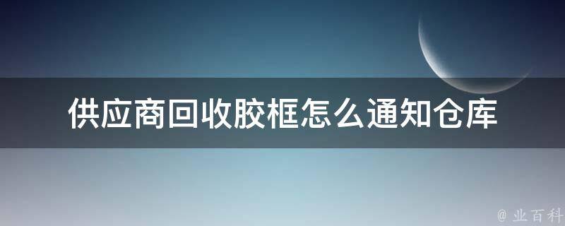 5、安排物流和交接:与供应商协商并安排回收胶框的物流和交接事宜,如提供仓库的地址、联系人和电话号码,协商回收方式(例如自行回收或安排物流人员回收)等。