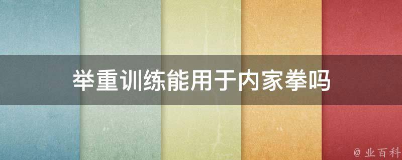 最佳答案举重训练不能用于内家拳,举重训练与内家拳的训练方法和理念不太相符,因为两者有不同的目标和重点。内家拳注重身心一体,柔和的力量、技巧和内功的发展,强调的是内在的能量和内力的运用。举重训练则主要关注肌肉力量和体能的提升。