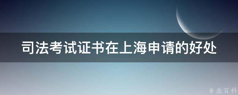 3、专业认可和信誉:司法考试证书是对您法律知识和执业能力的认可和证明,有助于提升您的专业信誉。上海作为一个法治环境较为成熟的城市,对持有司法考试证书的专业人士更加重视和认可。