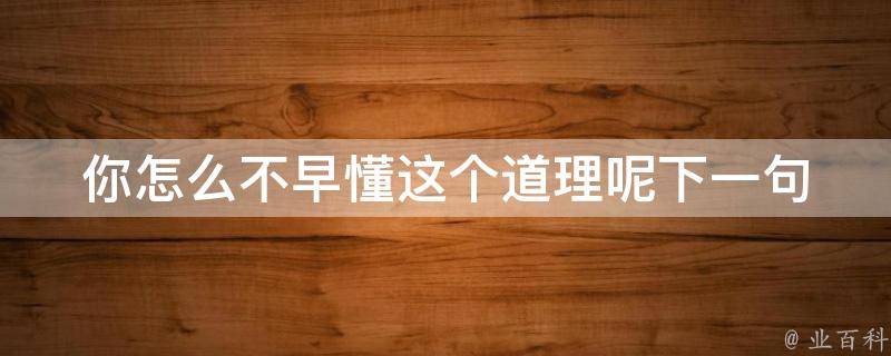 你怎么不早懂这个道理呢下一句是以至于走了很多不必要的路,这句话的意思是如果早些认识到这个道理,可能就不会经历那么多不必要的困境和曲折的道路了,它表达了一种后悔和反思的情绪,认识到在过去由于不了解这个道理而采取了不明智的决策所带来的不良后果,并希望在未来能以更明智和有效的方式行事。