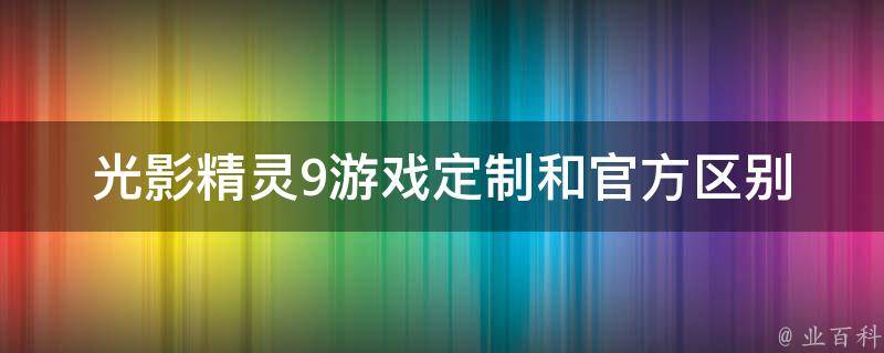光影精灵9游戏定制和官方的区别是光影精灵9游戏定制版更专注于游戏的性能、特殊功能和用户支持,是为了提供更优秀的游戏性能和用户体验而进行定制的版本。光影精灵9游戏定制版针对游戏进行了专门的性能优化,以确保游戏在电脑上获得更好的表现。这包括了优化游戏的帧率、流畅度和响应时间,以及减少游戏运行时的卡顿和延迟。光影精灵9游戏定制和官方的区别是光影精灵9游戏定制版更专注于游戏的性能、特殊功能和用户支持,是为了提供更优秀的游戏性能和用户体验而进行定制的版本。光影精灵9游戏定制版针对游戏进行了专门的性能优化,以确保游戏在电脑上获得更好的表现。这包括了优化游戏的帧率、流畅度和响应时间,以及减少游戏运行时的卡顿和延迟。