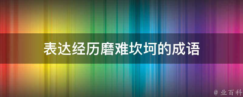 表达经历磨难坎坷的成语有波折不断、风雨飘摇、曲折艰辛、坎坷不平、历经千辛、历经沧桑、跌宕起伏、荆棘满途、坚忍不拔、不屈不挠、苦尽甘来、翻山越岭、跋山涉水、饱经忧患、饱经风霜、颠沛流离等。