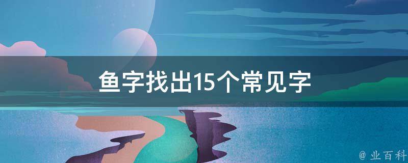 鱼字找出15个常见字有:鱼、田、日、口、王、干、土、工、三、旦、山、二、一、白、十。鱼是指水生脊椎动物,生活在水中,体温随外界温度而变化,一般身体侧扁,有鳞和鳍,用鳃呼吸。