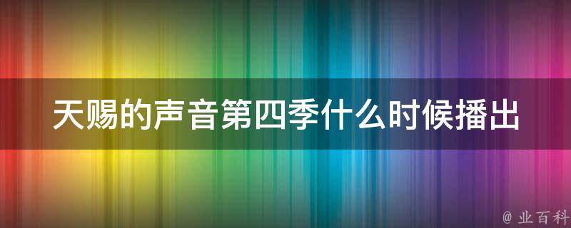 天赐的声音第四季播出时间是2023年4月28日。《天赐的声音第四季》是浙江卫视推出的音乐励志节目,共12期,于2023年4月28日起每周五22点在浙江卫视播出,并于22:30在Z视介上线。