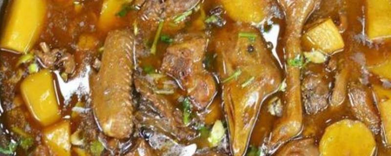 用料:大鹅650克、土豆170克、油25克、老抽半汤匙、料酒2汤匙、盐3克、大葱15克、生姜10克、八角少许、桂皮少许、干红辣椒少许、花椒粉少许、生抽1汤匙。