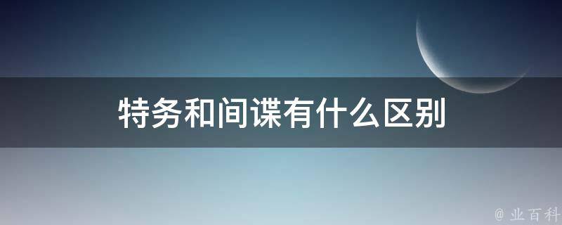 性质不同:间谍指被间谍情报机构秘密派遣到对象国(地区)从事以窃密为主的各种非法谍报活动的特工人员,又指被对方间谍情报机构暗地招募而为其服务的本国公民。特务一般指特工,又称秘密警察、政治警察,通常属于政府雇员,为安全、军事、政治系统工作的特殊工作人员。