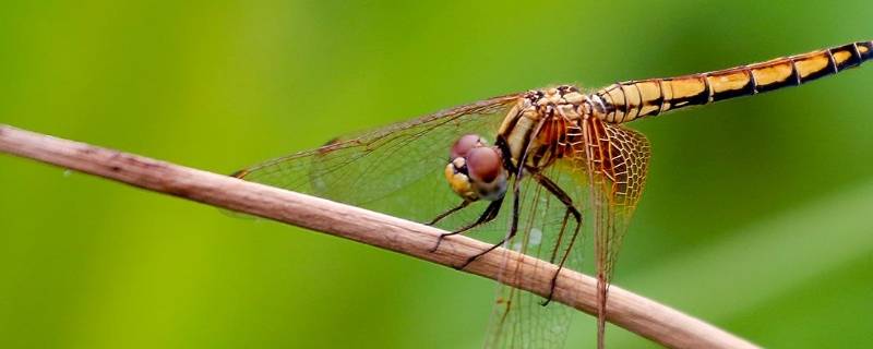 蜻蜓。“蜻蜓点水”是蜻蜓将卵产在水中的生物学特征。其幼虫(稚虫)生活在水中,生活期因种类而异,蜓类一般为2年,有的长达了3至5年。可以用来监测环境污染,有药用、食用、观赏价值。