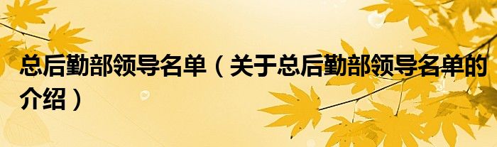 大家好,小夏来为大家解答以上的问题。总后勤部领导名单,关于总后勤部领导名单的介绍很多人还不知道,现在让我们一起来看看吧!