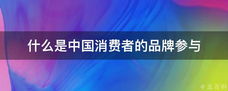 中国消费者的品牌参与是消费者对某一产品、事物、事件或行为的重要性与自我的相关性的认识。消费者参与的因素可以是产品或品牌,也可以是任何事物、事件、行为。消费者的参与包括认知活动、感知活动、情绪情感活动等许多方面,它是一种激发的状态,为消费者购买决策过程中的认知行为提供动力和指导。