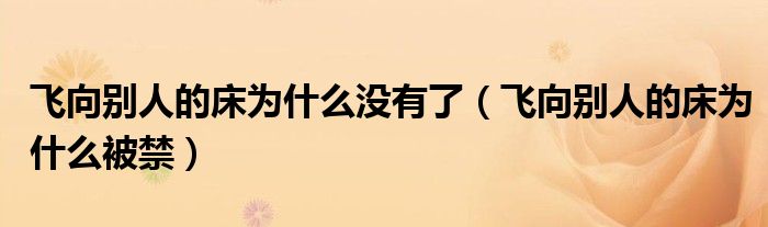 大家好,小联来为大家解答以上的问题。飞向别人的床为什么没有了,飞向别人的床为什么被禁这个很多人还不知道,现在让我们一起来看看吧!