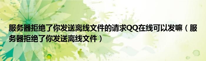 关于服务器拒绝了你发送离线文件的请求QQ在线可以发嘛,服务器拒绝了你发送离线文件这个很多人还不知道,今天菲菲来为大家解答以上的问题,现在让我们一起来看看吧!