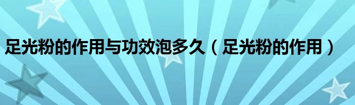 关于足光粉的作用与功效泡多久,足光粉的作用这个很多人还不知道,今天菲菲来为大家解答以上的问题,现在让我们一起来看看吧!